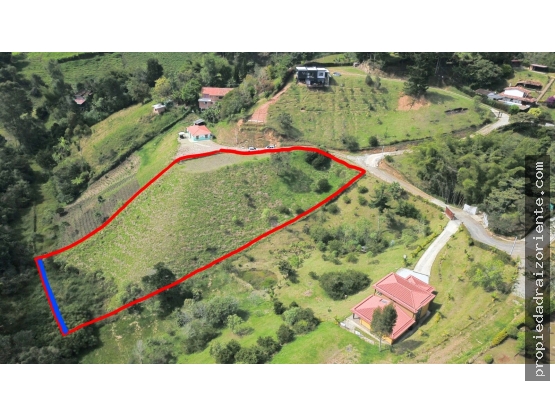 Venta de lote en Marinilla Antioquia a tan solo 4km de la autopista Medellín - Bogotá por vía completamente pavimentada hasta la parcelación. Cuenta con explanación de 400mts2 teniendo la posibilidad de ser ampliada, conexiones de agua y luz, riachuelo en uno de sus extremos y placa huella hasta el lote.